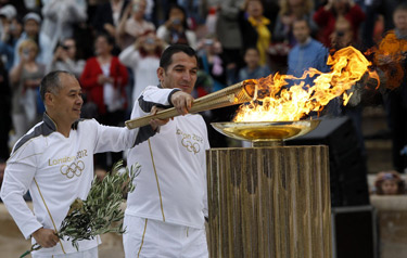 5月10日,伦敦奥运会在古代奥运会发源地希腊南部古奥林匹亚的赫拉神庙遗址进行圣火采集,标志着奥运会正式进入伦敦时间。圣火在希腊境内历经34个城市、全长3000公里的传递后,于17日抵达雅典。从19日开始,奥运圣火将在英国境内进行为期70天的传递。